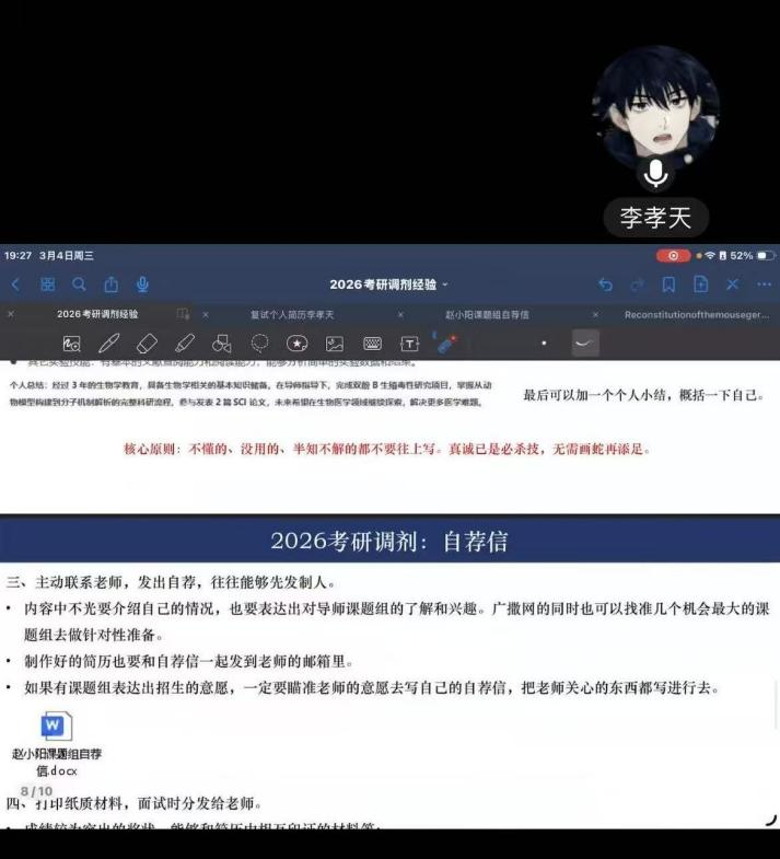 针对考研学子初试后的实际需求,为帮助毕业生在复试环节脱颖而出,学院精心策划并举办了“研途相伴,经验传承”考研复试经验分享会。活动邀请了往年成功上岸中国科学技术大学、南方医科大学的优秀校友,通过线上会议形式为毕业年级学生传经送宝。学长们结合自身经历,围绕复试流程、面试技巧、导师选择及心态调整等方面进行了详细讲解,并针对学弟学妹们的个性化问题进行了答疑解惑。这场“云端对话”不仅提供了实用的备考策略,更极大地增强了同学们的备考信心,助力他们在升学路上少走弯路。