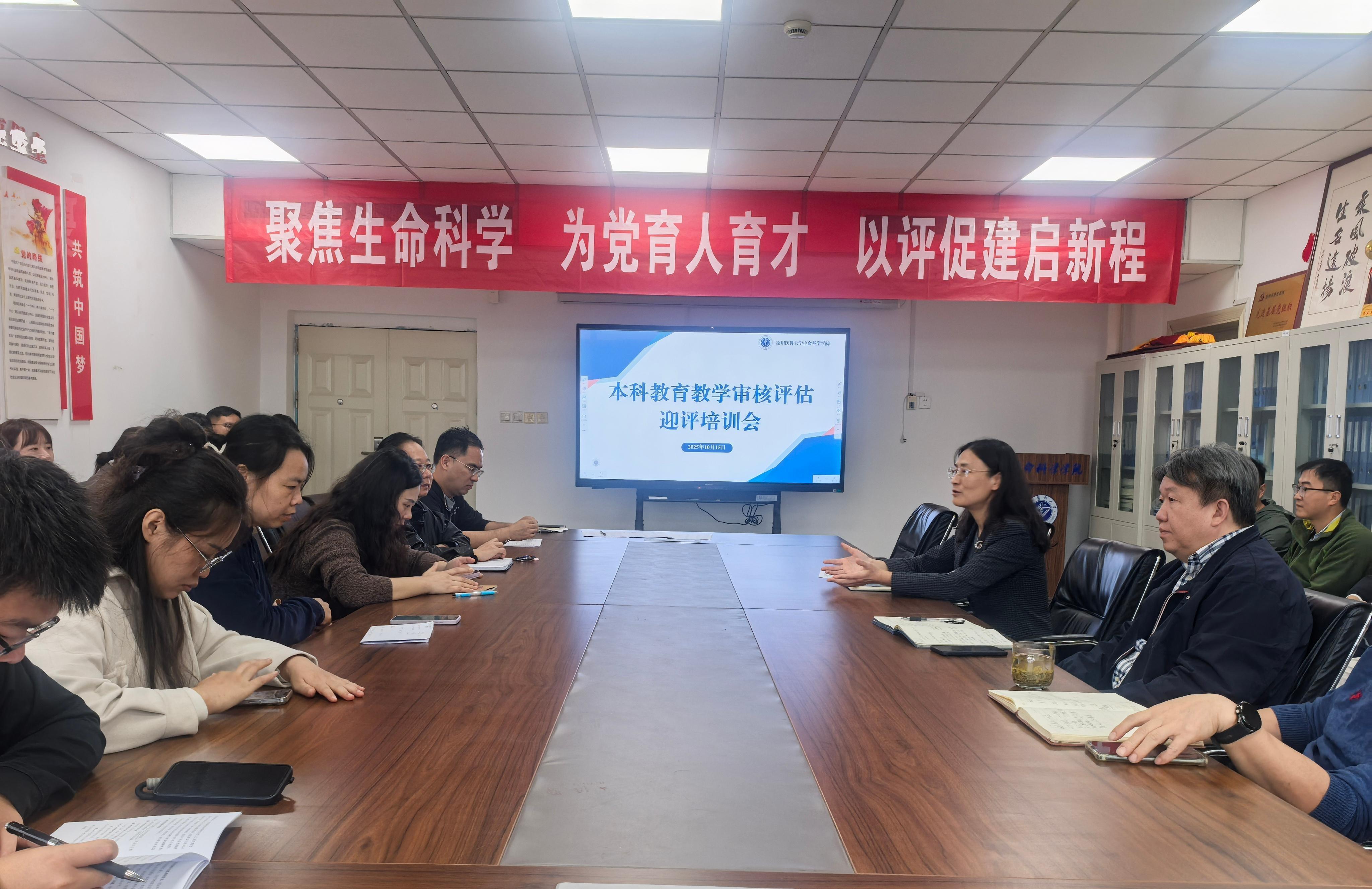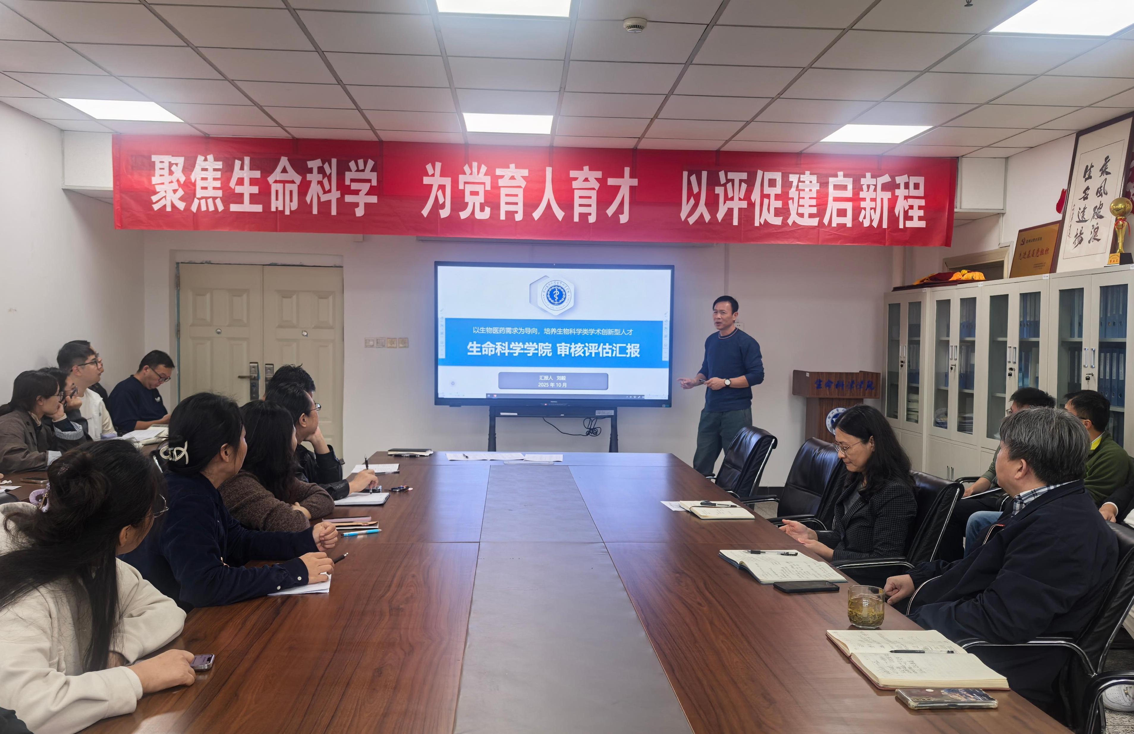 为扎实推进本科教育教学审核评估工作,充分展现人才培养与教育教学成效,强化全员“以评促建、以评促改、以评促管、以评促强”的核心理念,进一步做好迎评工作,10月15日下午,生命科学学院全体教职工在学院会议室召开本科教育教学审核评估迎评培训会。会议由学院院长高灿主持。